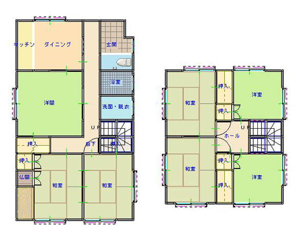 | 間取り | 7DK 1階:和室(6・6帖)、洋室(8帖)、DK、浴室、トイレ 2階:和室(6・6帖)、洋室(4.5・4.5帖) |