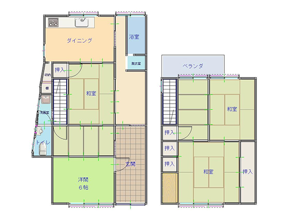 | 間取り | 6DK 1階:和6 和4 洋6 キッチン 風呂 トイレ 2階:和8 和6 和4 |